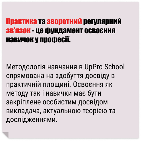 Ми точно знаємо, що поєднання практики, кращих викладачів та технологій забезпечує необхідний результат в освоєнні потрібних навичок і методів, а зміцнення навчання документами міжнародного зразка додатково підвищує вартість спеціаліста на ринку в будь-якій країні.
