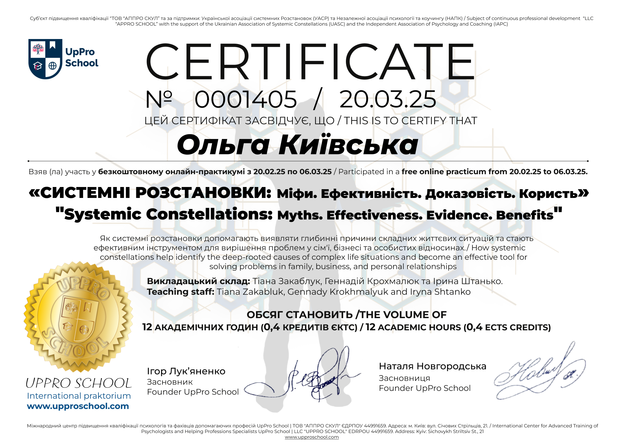 + Cертифікат учасника (12 ак. год, 0,4 кредити ЄКТС)