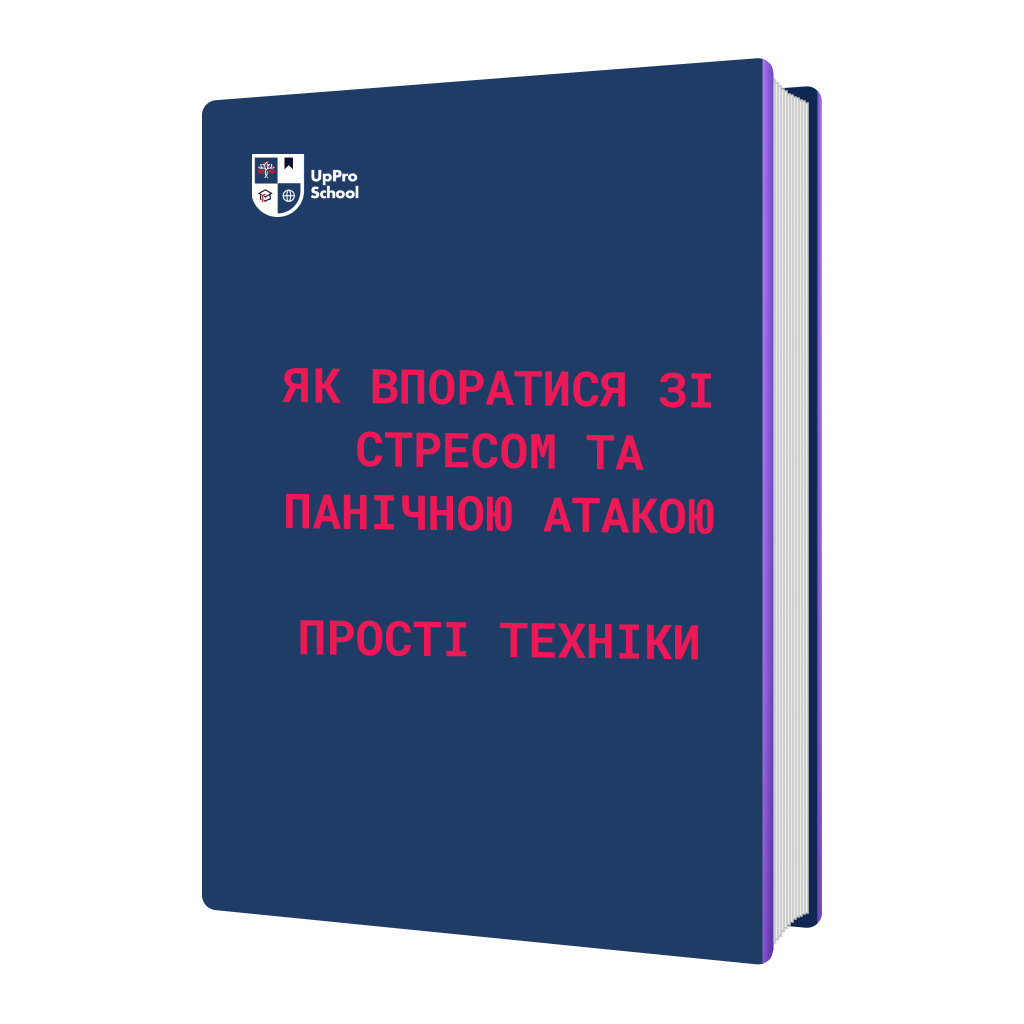 🎁 Бонус №2 📚Навчальний посібник від UpPro School в форматі PDF: «Як впоратися зі стресом та панічною атакою? Прості техніки»