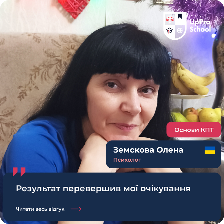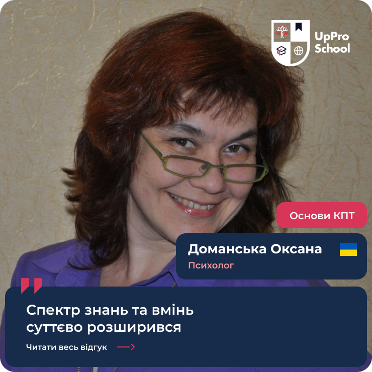 широкою експертністю не лише в КПТ, а й в інших підходах. Можна принести на розбір кейси зі своєї практики та в режимі реального часу отримати пораду та рекомендації.